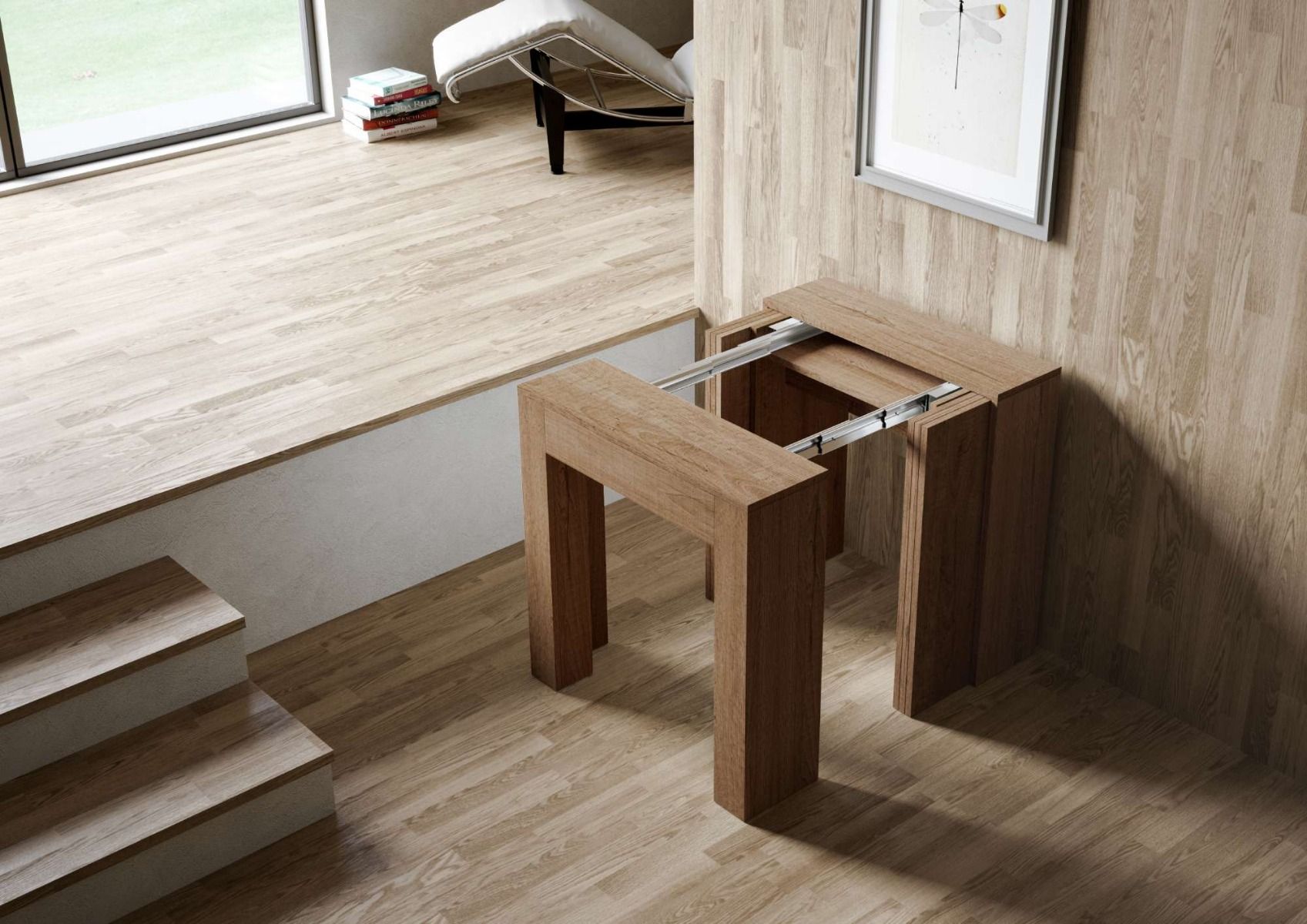Naturalmente, queste due soluzioni hanno dimensioni e caratteristiche diverse. Le consolle allungabili possono raggiungere, da aperte, dimensioni che superano i 3 metri totali e possono contenere fino a circa sedici persone in totale.
